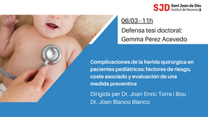 "Complicaciones de la herida quirúrgica en pacientes pediátricos: factores de riesgo, coste asociado y evaluación de una medida preventiva"