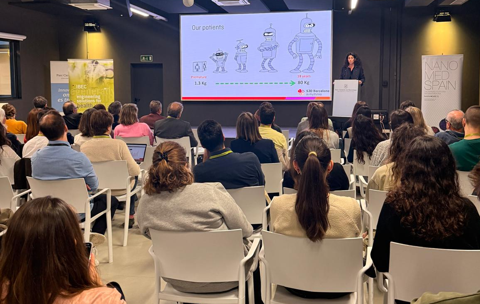 Per la seva banda, Georgia Sarquella, cap del grup Malalties cardiovasculars en el desenvolupament a l'IRSJD i cap del Servei de Cardiologia de l'Hospital Sant Joan de Déu, va presentar els avenços en el desenvolupament de micromarcapassos per a ús neonatal, una tecnologia que ja ha estat implantada en un nadó i que podria oferir noves solucions per a nadons.